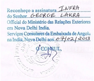 5. Attestation from Angola Embassy in Mumbai ( This final step not required for HCCH Member countries )