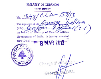- Attestation from Lebanon Embassy in Mumbai ( This final step not required for HCCH Member countries )