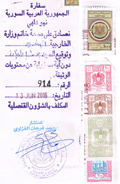 - Attestation from Syria Embassy in Gudivada ( This final step not required for HCCH Member countries )